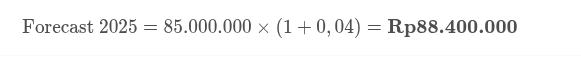 Menggunakan teknik statistik seperti regresi linier, moving average, atau exponential smoothing.