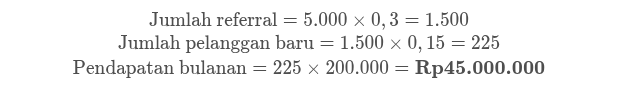 - Konversi referral menjadi pelanggan berbayar: 15%