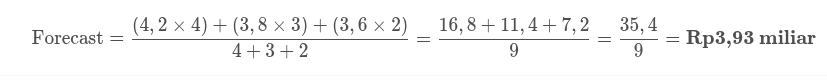 - Prediksi: 120, 130, 125, 140 (dalam juta)